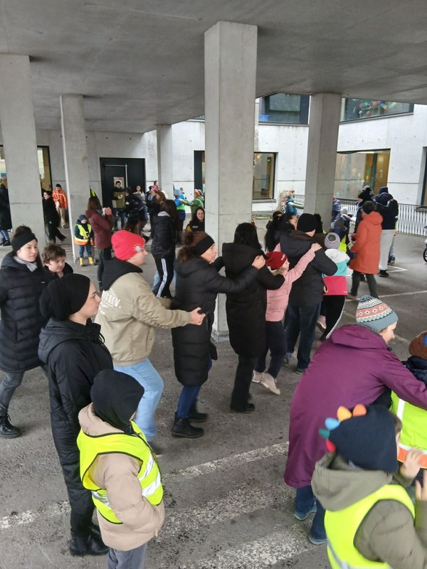 Besonderes Highlight war das selbst gestaltete Spiel der Klasse, das von vielen Kindern und Erwachsenen ausprobiert wurde. Die Aktion brachte viel Freude und zeigte, wie kreativ öffentliche Räume genutzt werden können.