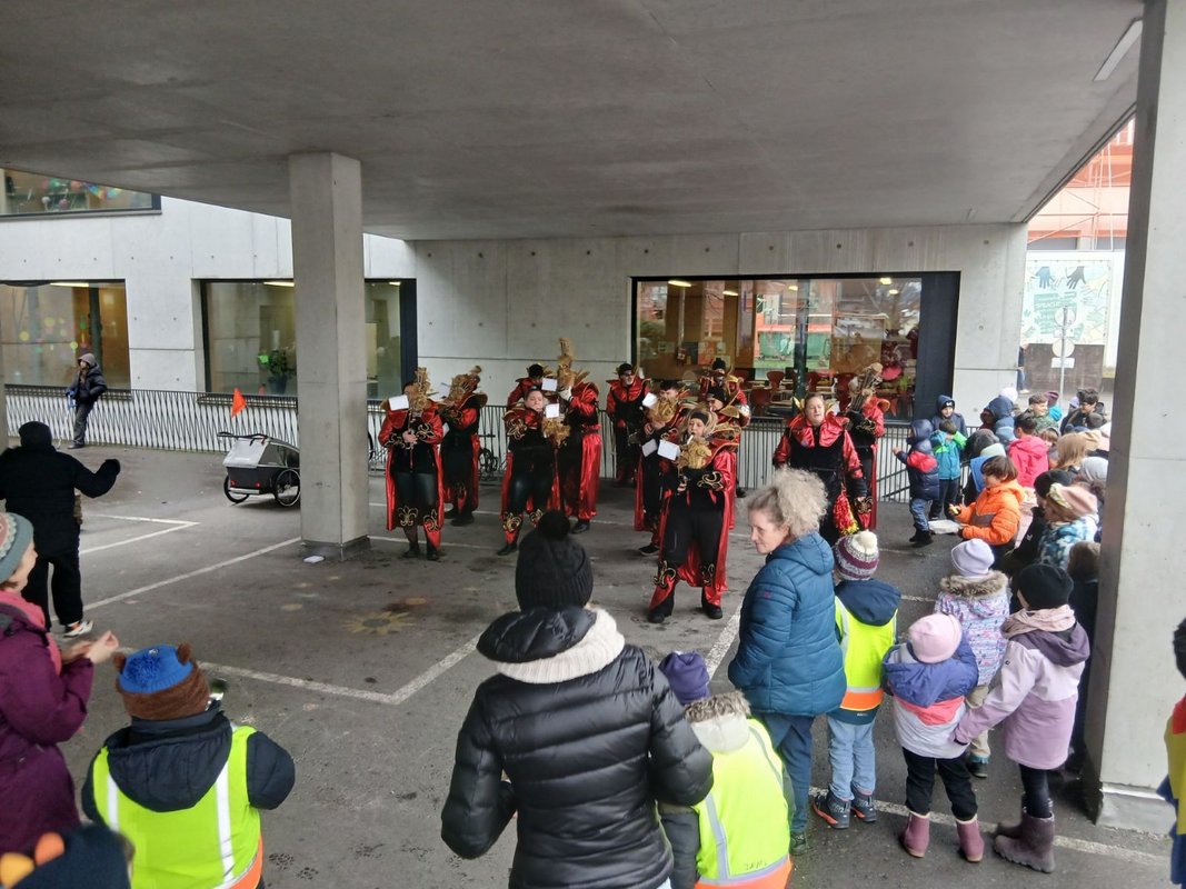 Am Faschingsdienstag feiern wir in der Schule eine tolle Party. Alle Schülerinnen und Schüler kommen verkleidet und tragen bunte, lustige oder auch gruselige Kostüme. Die Klassenräume sind mit Luftballons, Girlanden und bunten Dekorationen geschmückt.