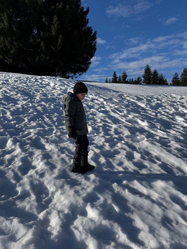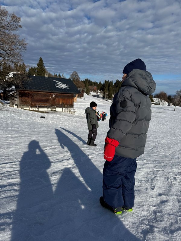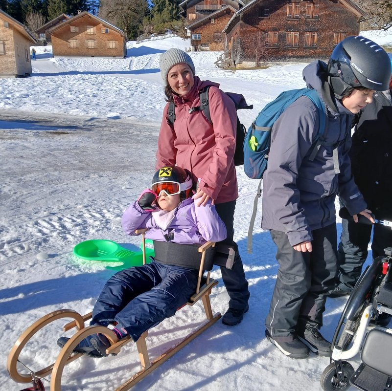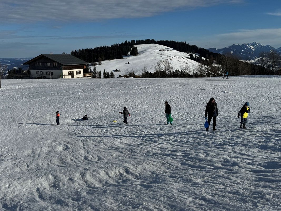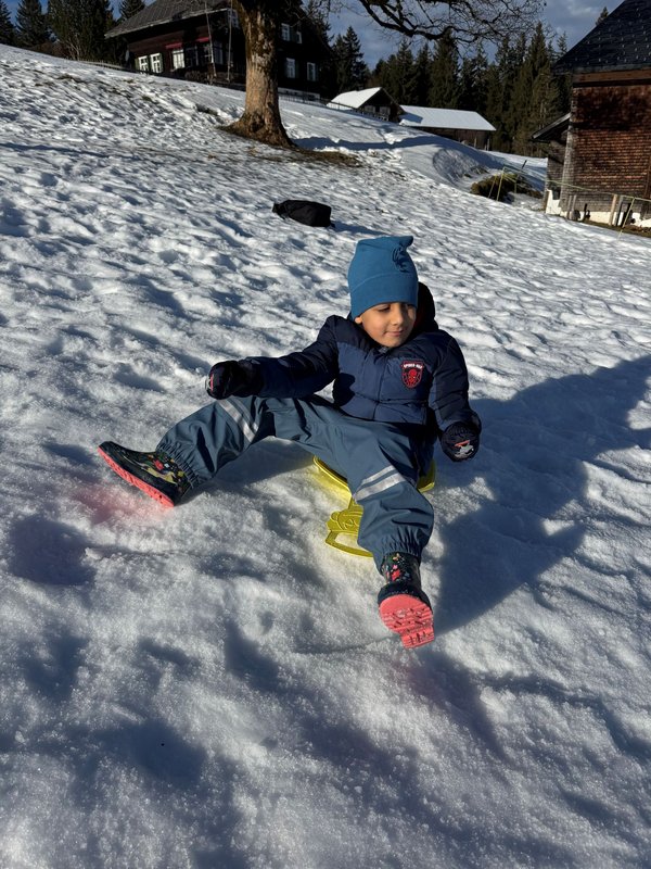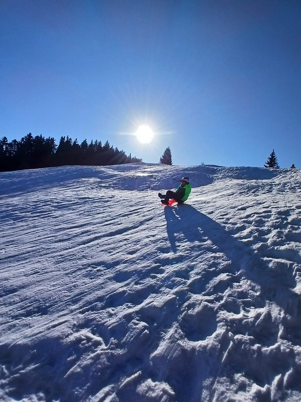 Die O4 im Schnee - Rodeln am Bödele bei strahlendem Sonnenschein und eisiger Rodelpiste.