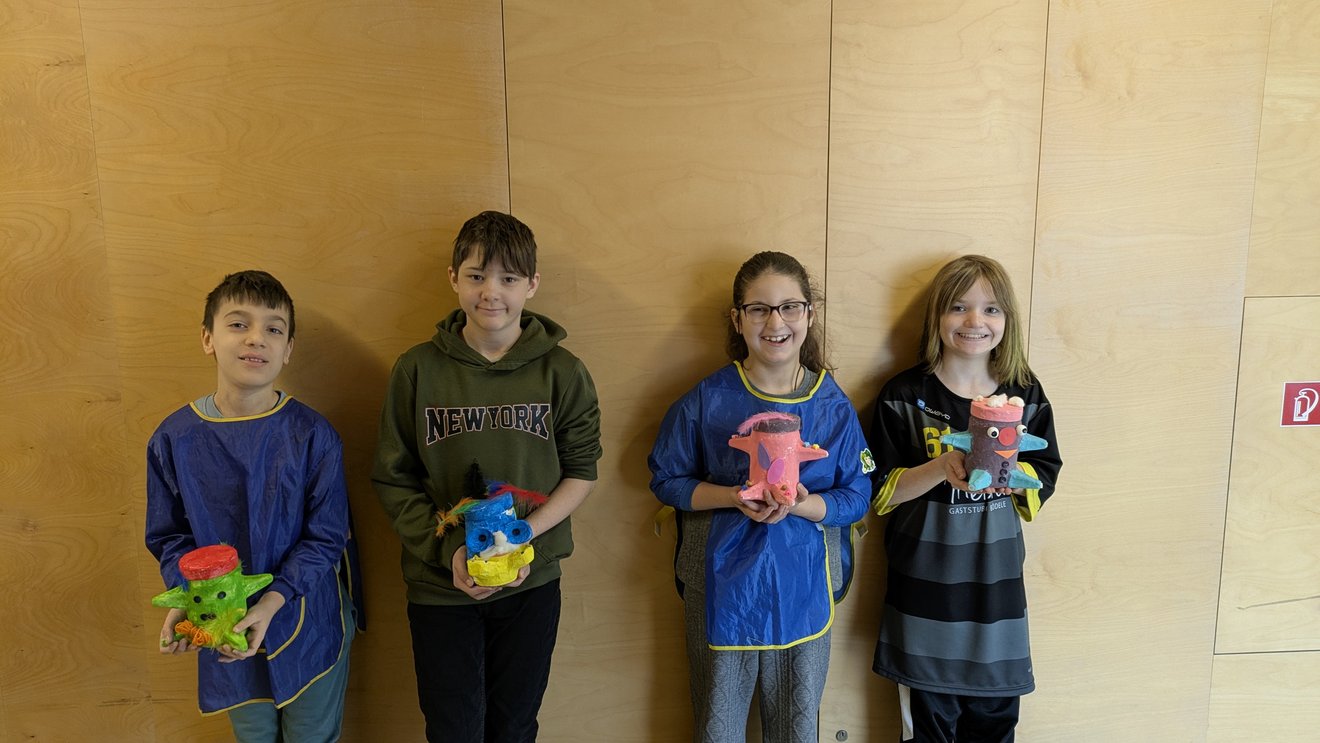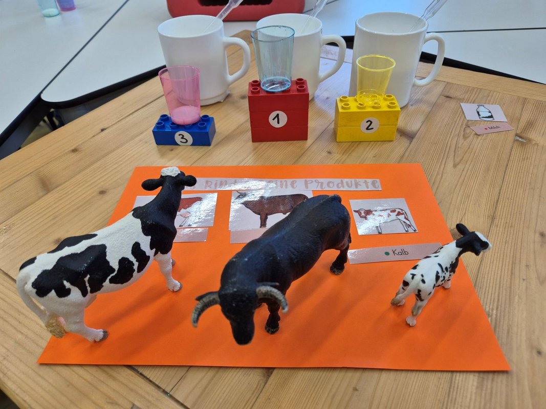 Nachdem wir uns zu Schulbeginn intensiv mit Fischen, dem Regenwurm und dem Igel beschäftigt hatten, standen im November und Dezember das Rind und das Schaf im Mittelpunkt. Auf dem Programm standen eine Milchverkostung mit Prämierung, ein Besuch auf dem Bauernhof sowie ein gemeinsamer Projekttag mit der O3-Klasse. Außerdem sammelten die Kinder vielfältige Tasterfahrungen rund um die Schafwolle und lernten verschiedene Produkte daraus kennen.