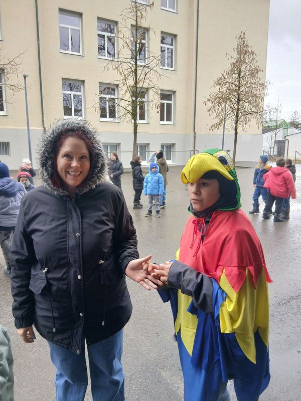 Auch die Lehrerinnen und Lehrer sind verkleidet und feiern mit uns. An diesem Tag haben alle Spaß und genießen die gemeinsame Zeit. Faschingsdienstag ist immer ein ganz besonderer Tag in unserer Schule. 🎭🎉