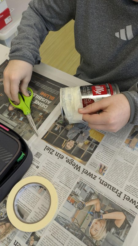 - Dosemännle- das Ökolog ProjektIn den Klassen B5 und O6 wurde viel gebastelt.Aus alten Kaffeebohnendosen, Eierkartons, Zeitungspapier und buntem Papier entstanden lustige „Dosemännle“.Die Schülerinnen und Schüler hatten viel Freude dabei.Jedes „Dosemännle“ ist anders und etwas ganz Besonderes.Die Kinder und Jugendlichen haben gelernt:viele Dinge muss man nicht wegwerfen. Man kann sie wiederverwenden.Das Projekt hat Spaß gemacht und war gut für die Umwelt.