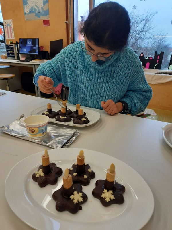 Die O6 und die B5 waren heute gemeinsam in der Backstube auf dem Dornbirner Christkindlmarkt und haben Kekse gebacken.